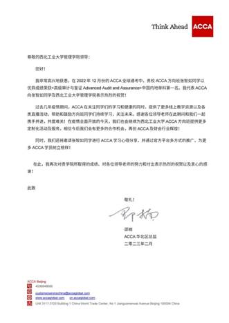 会计学(ACCA方向)专业2019级张智如同学以优异成绩荣获< 高级审计与鉴证 Advanced Audit and Assurance>中国内地单科第一名。ACCA华北区总监代表ACCA中国总部发来贺信,对张智如同学以及我校漫岛动漫