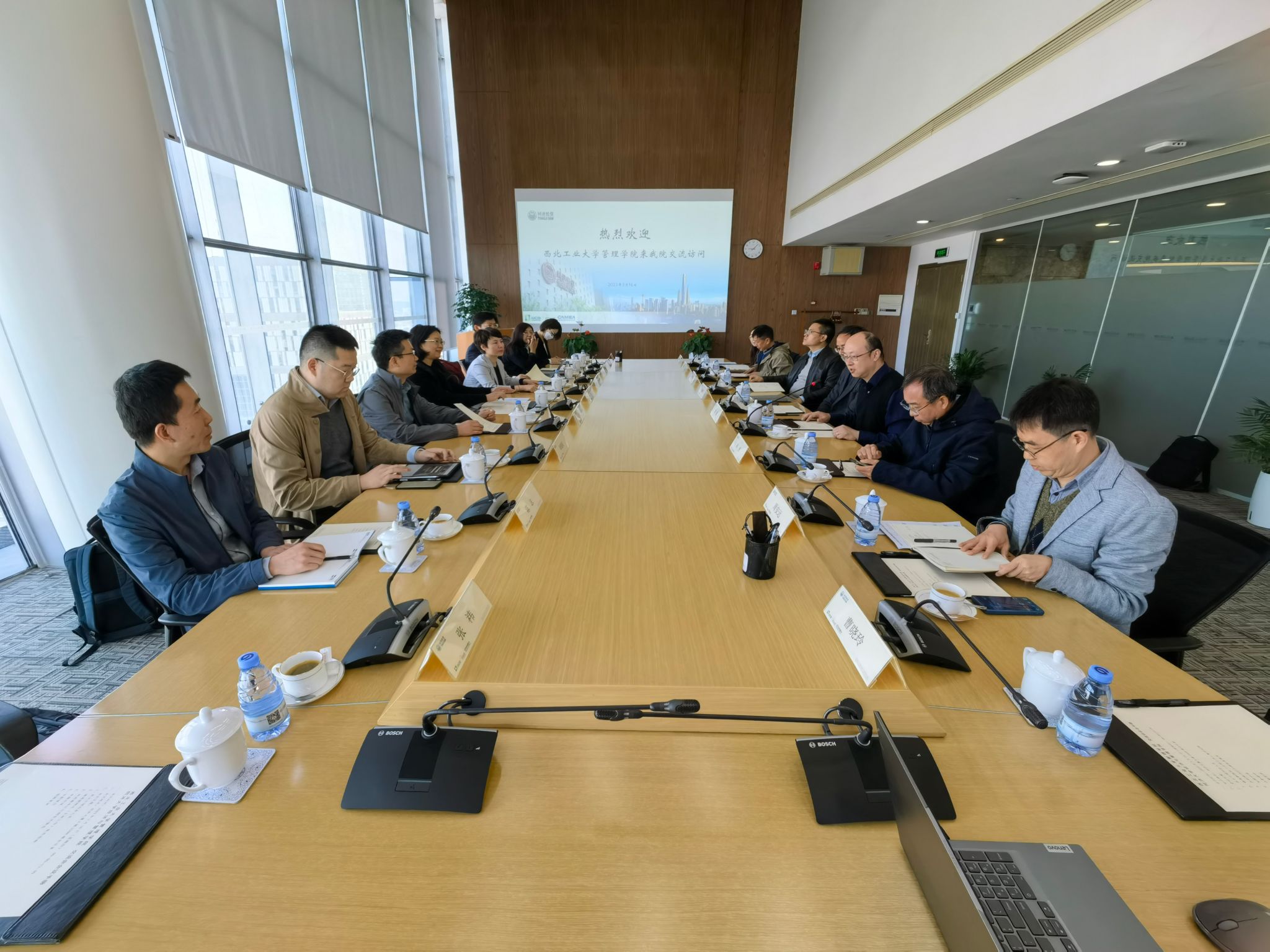 调研团队进行座谈交流。谢院长详细介绍了同济经管学院的发展目标和“十三五”建设成效,双方围绕科研平台(实验室)建设、学科发展、青年教师引育等进行了深入的探讨交流,并实地参观了学院教学、科研实验室。