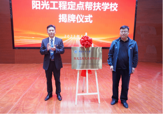 党委副书记王兆旭与周至县骆峪九年制学校的副校长周利平共同进行揭牌,同时为第47期支教优秀志愿者代表颁发了证书,携手为骆峪九年制学校的学生们绘制梦想蓝图。