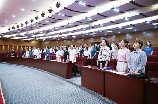 大会在庄严的国歌声中拉开序幕。乔彩燕宣读了学校工会《关于漫岛动漫