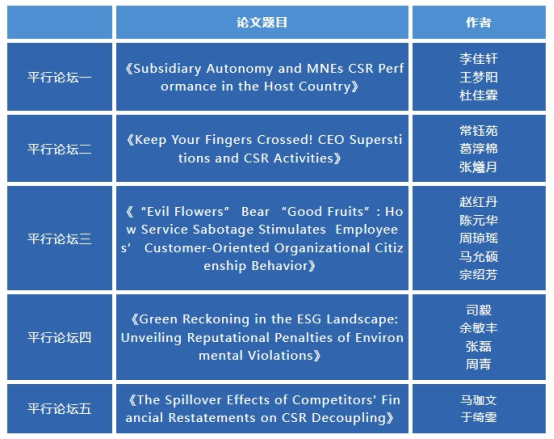 6月25日上午,Prof. Heli Wang、Prof. Guoli Chen、Prof. Yaping Gong、Prof. Wei Guo和Prof. Danqing Wang五位老师以指导教师的身份分别参与了五个平行论坛,论坛分别由童立老师、龚汨嘉老师、王娟老师、刘慧老师和徐月华老师主持。此次平行论坛主要是对本次会议收录的报告论文进行分组讨论,来自中国人民大学、同济大学、山东大学、厦门大学、新加坡管理大学等高校的23位学者报告了各自的研究成果,并得到了指导教师的悉心点评。