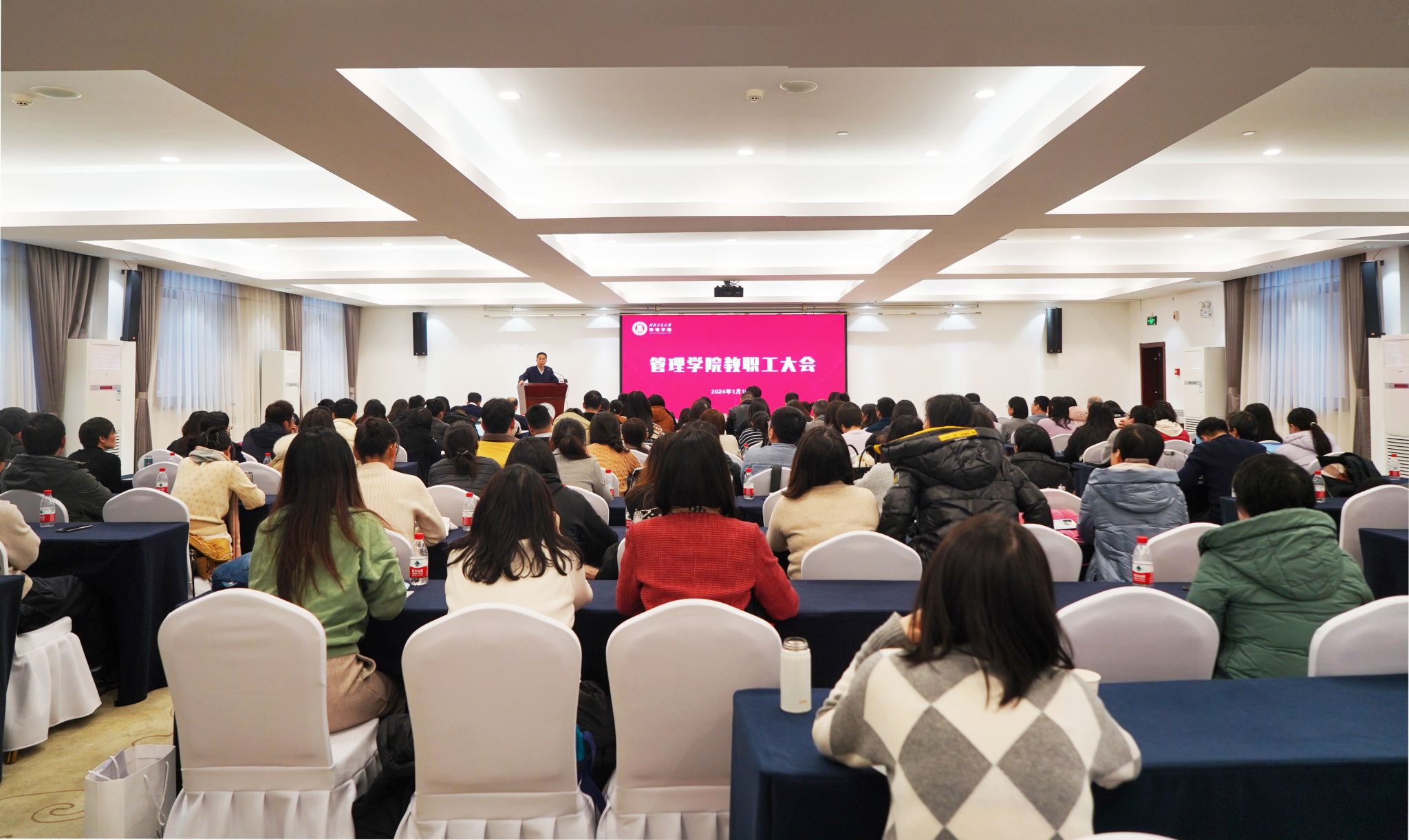 召开2023年度教代会暨全院教职工大会。会议分两部分进行,一是由工会主席蔡建峰主持2023年度教职工代表大会;二是由学院党委书记张爽主持2024年寒假全院教职工大会。学院全体教职工参加会议。