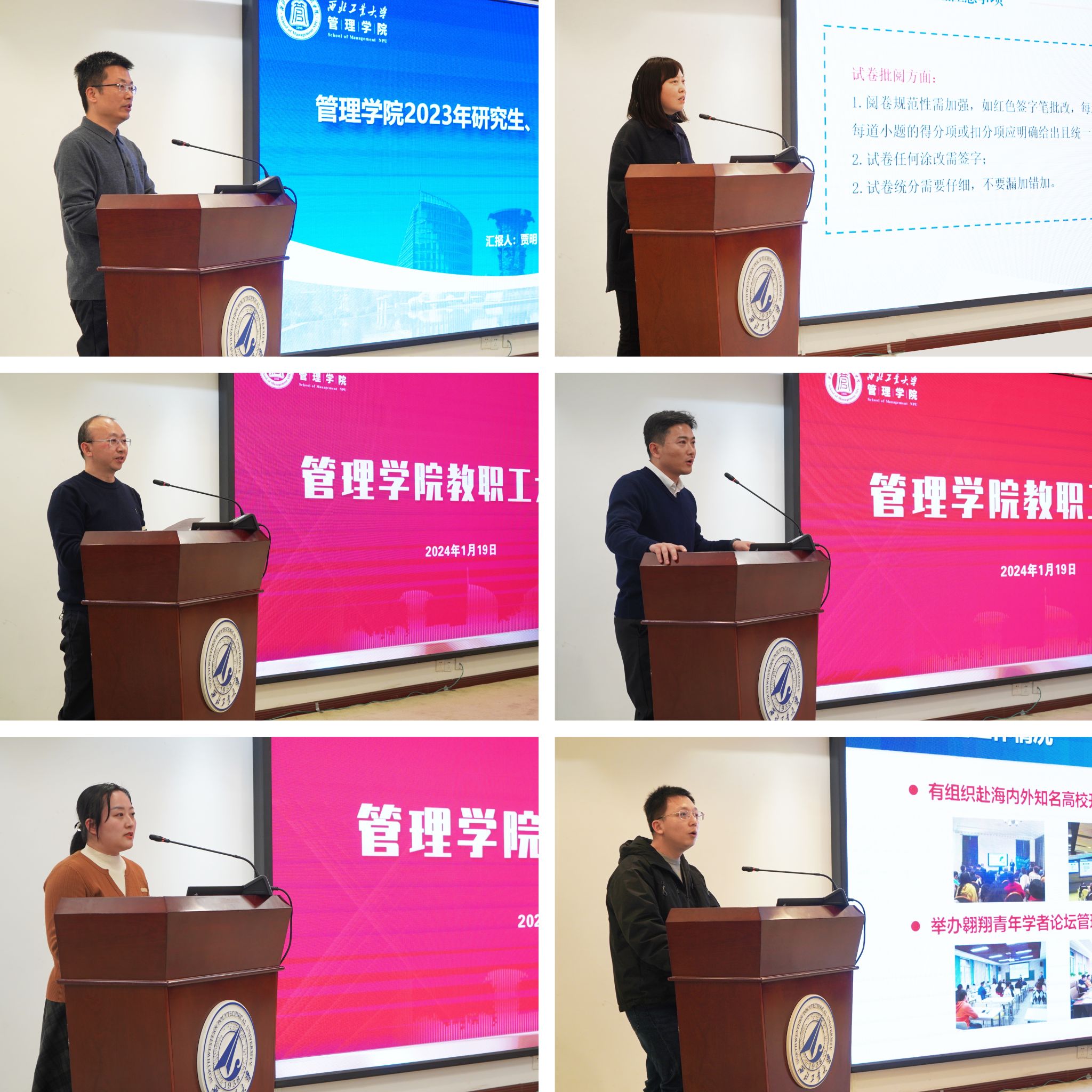 教职工大会上,副院长贾明、陈琳、郭云涛以及党委副书记王兆旭,院长助理李乘龙、邵婧根据各自分管工作,分别围绕教学、科研、学生管理、人才队伍建设、国际化等方面,结合学校近期有关要求,通报了学院现阶段各项工作的推进落实情况,并就下一步工作的重点事项及举措进行安排部署。