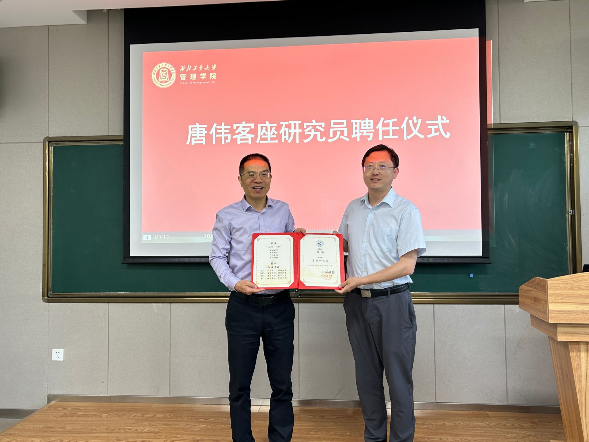 在讲座开始之前,车阿大对唐伟的到来表示热烈欢迎,对其个人经历和学术成就进行简要介绍,并为他颁发客座研究员聘任证书。车阿大表示,唐伟已成为学院的一份子,希望未来在项目申请、科学研究等方面能够助推学院高质量发展。唐伟表示,受聘为漫岛动漫 客座研究员既是对自身的肯定也是前行的动力,将积极促进校企合作,高质量完成客座研究员的目标任务。
