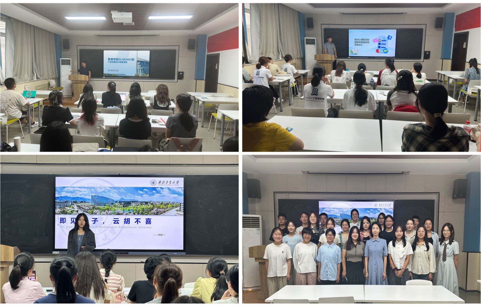本科生综合素质测评的具体实施细则,全面介绍了学院的奖助政策体系、本科生参与创新创业工作的相关政策和机会。学工秘书张梦予全面介绍了学生党建工作的重要性和党员发展流程,详细讲解了大一新生如何努力争取早日加入党组织,让新生对党组织有了更清晰的认识和了解。此外,2024级各小班还在班主任的主持下召开了班会,组织开展了破冰活动,选举产生了各班班委,为班级后续各项工作的顺利开展打下了良好基础。