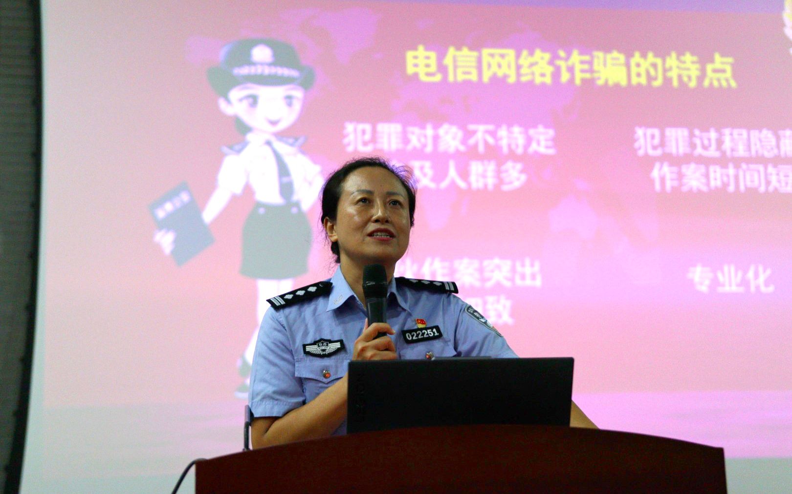 邀请了西安市公安局碑林分局的吕欣警官,为新生们带来了一场以“电信网络诈骗的识别与防范”为主题的精彩讲座。吕欣警官结合自己的反诈工作经历,通过幽默风趣的语言,为同学们讲解了大量大学生和家人遭遇电信诈骗的真实案例,警示同学们要注重保护个人信息,时刻保持对诈骗的警惕,不听、不信、不转账。此次讲座加深了同学们对电信诈骗的认知,提升了防范意识。