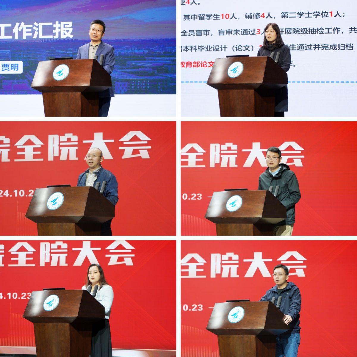 会上,副院长贾明分析了学院近年来项目申报和立项情况,对2025年基金申报工作进行了动员,希望各位老师能提早谋划、尽早布局,学院也会提供更精准的项目申报服务支撑,力争明年国家级项目获批数取得新突破。副院长郭云涛介绍了今年学院专业学位招生报名、培养管理以及社会实践等方面工作进展,对招生、培训、国防领域导师推荐等工作进行了安排动员。副院长陈琳通报24届本科生毕业、本科生招生及转专业情况,就下一步重点工作进行安排部署。党委副书记王海啸就学院近期学生管理、学风建设、就业工作等内容进行了汇报,对现阶段学生管理方面出现的问题进行了分析,并就后续学院在学风建设、专业认知教育、“创新创业”等方面将要开展的工作进行了介绍。 院长助理邵婧通报学院国际化工作进展情况,并就教师学生出国访问相关事项进行提醒。院长助理李乘龙通报学院人事人才工作进展及有关基本工作量考核提醒。