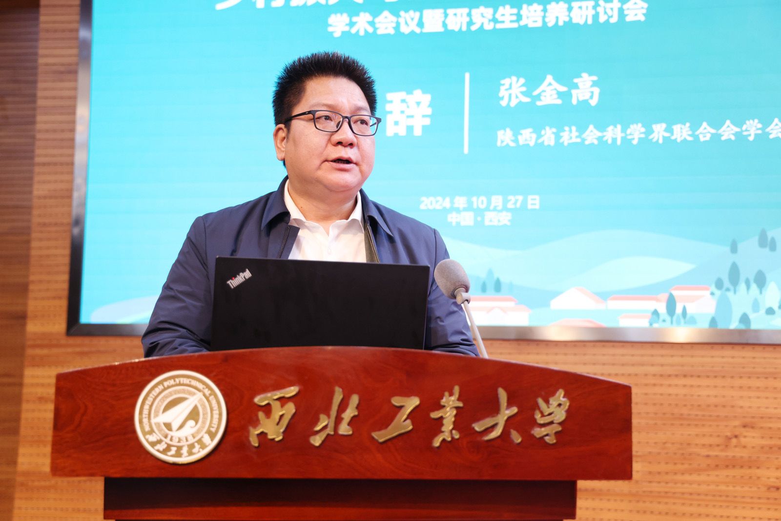 副校长侯成义、陕西省社会科学界联合会学会部部长张金高、陕西省人力资源和社会保障厅乡村振兴办主任闫国升分别致辞。我校副校长侯成义代表学校致欢迎辞,他向出席会议的领导嘉宾、专家学者和师生代表表示热烈欢迎。他指出,党的二十大做出了全面推进乡村振兴的战略部署,强调坚持农业农村优先发展,走中国特色社会主义乡村振兴道路。现阶段乡村振兴的主要任务是全面推进县域高质量发展,坚持走城乡融合发展之路。研究生作为高层次人才,引导和鼓励其投身县域经济建设既是践行乡村振兴“五位一体”总体布局,也有助于创新高校科技人才培养模式。希望本次大会能够为大家提供一个交流思想、分享经验、拓展视野的平台,共同推动乡村振兴与县域经济高质量发展不断向前超越。