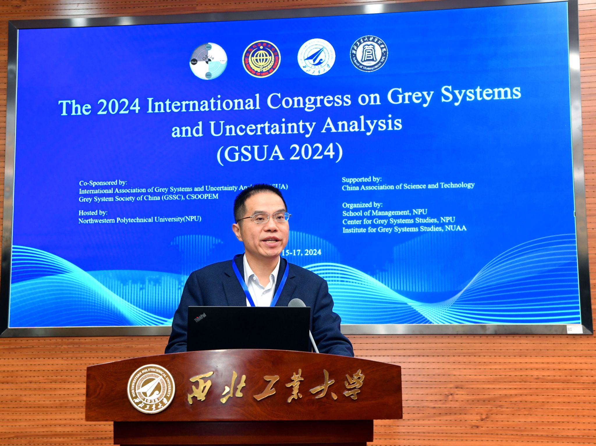 教授、灰色系统与不确定性分析国际联合会主席刘思峰在致辞中回顾了灰色系统理论40多年的发展历程,对创始人邓聚龙的贡献表示崇高的敬意,并对中国优选法统筹法与经济数学研究会灰色系统专业委员会、GSUA国际联合会同仁和国内外相关出版机构为灰色系统理论创新、发展和传播所做出的重要贡献表示感谢。