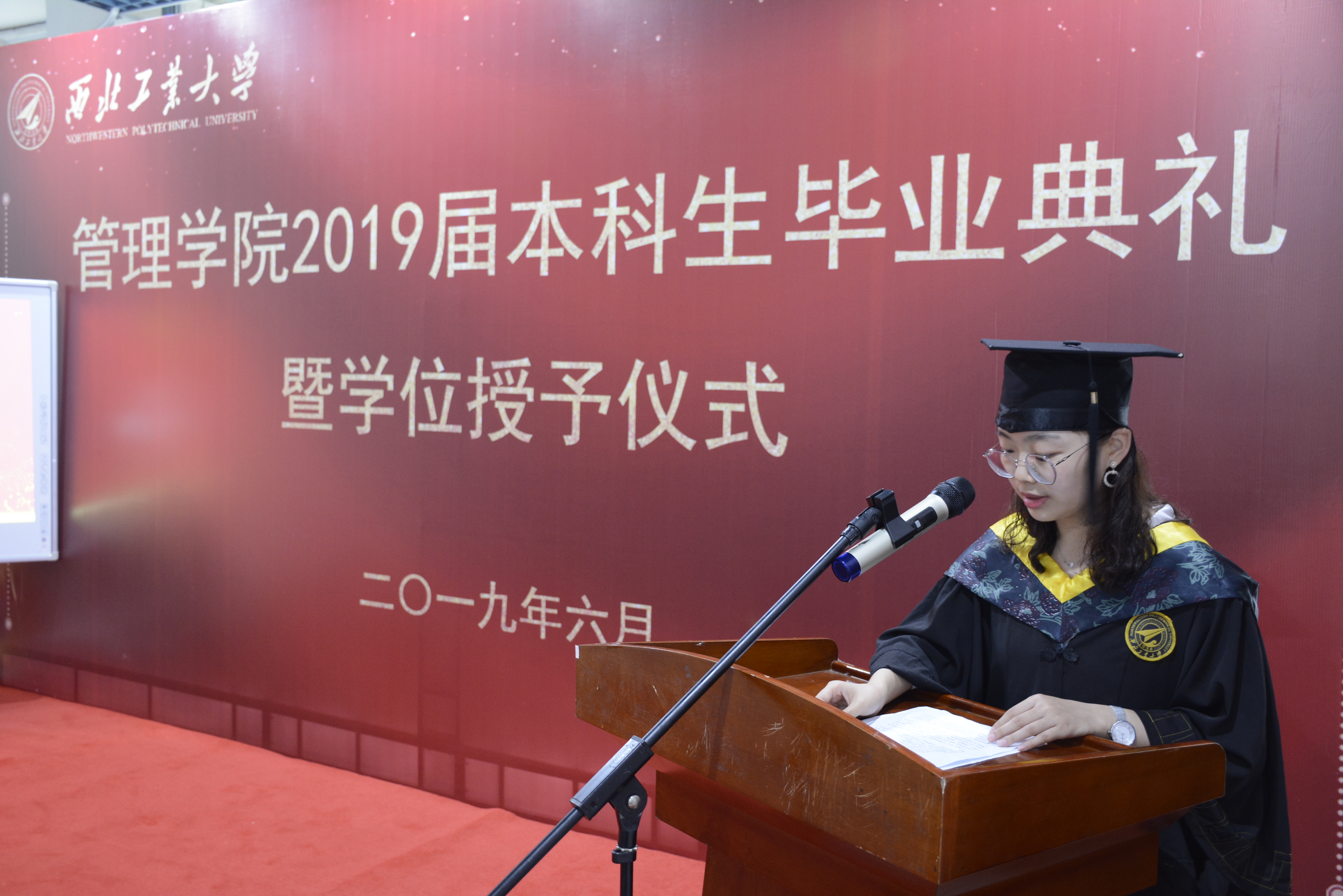 首先,由2015级会计系的毕业生孟源发言,她代表所有毕业生感谢师长的谆谆教诲,感谢学院的关怀培养,并表示今后将继续坚持原则,坚持所爱,不随波逐流,不趋炎附势,心怀热枕,勇于追梦,不负青春不负韶华。祝福瓜大管院明天会更好,祝愿老师桃李满天下。