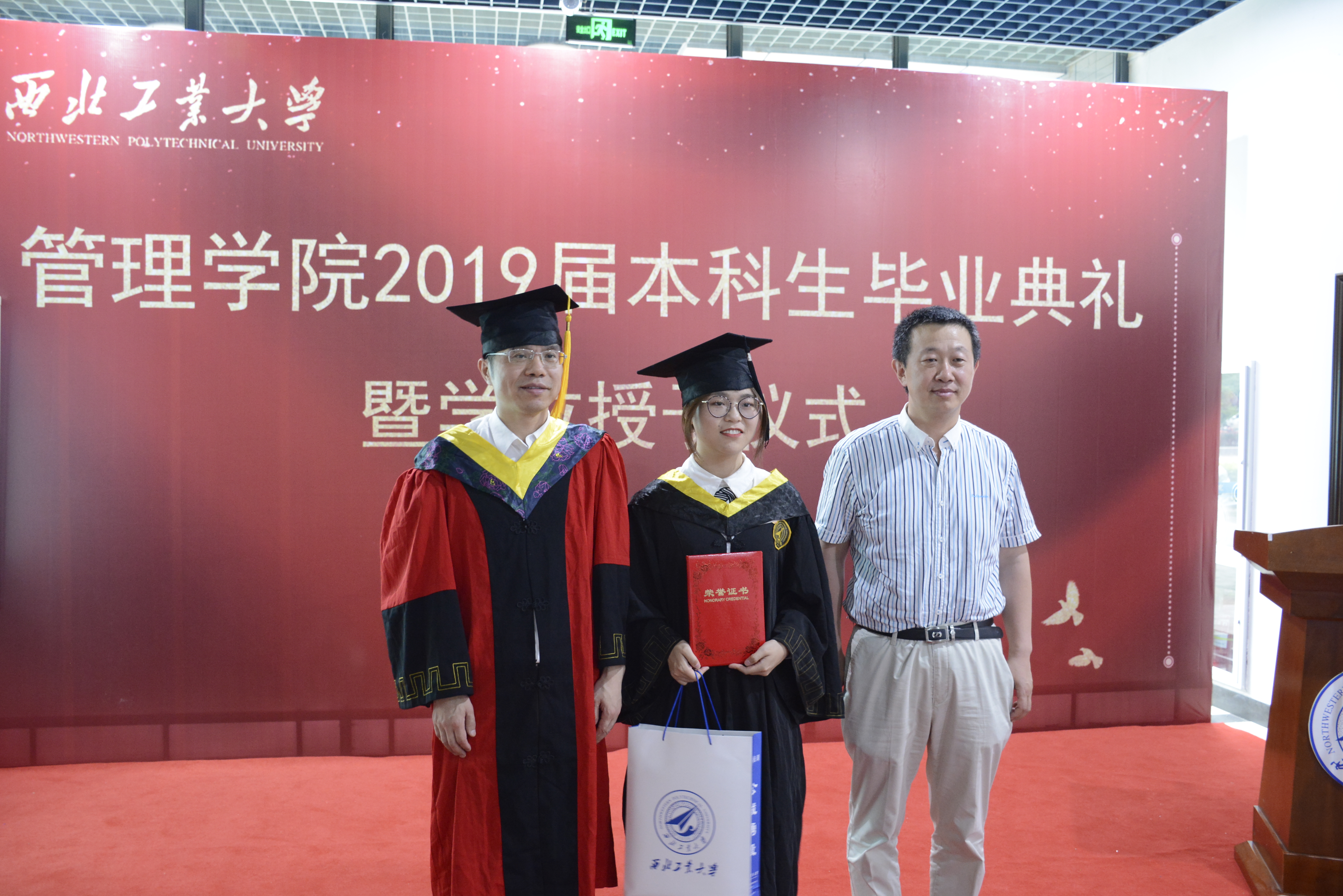 在激昂的乐曲声中,漫岛动漫 院长车阿大,党委书记李小聪为优秀毕业生,校友联络人以及获得2019届西工工业大学“翱翔学子建功立业奖”毕业生拨穗,颁发荣誉证书并赠送毕业礼物。获奖学生们纷纷表达了对母校、学院,师长的感恩之情,并表示今后将不断努力拼搏,有所作为,为管院,为母校争光添彩。