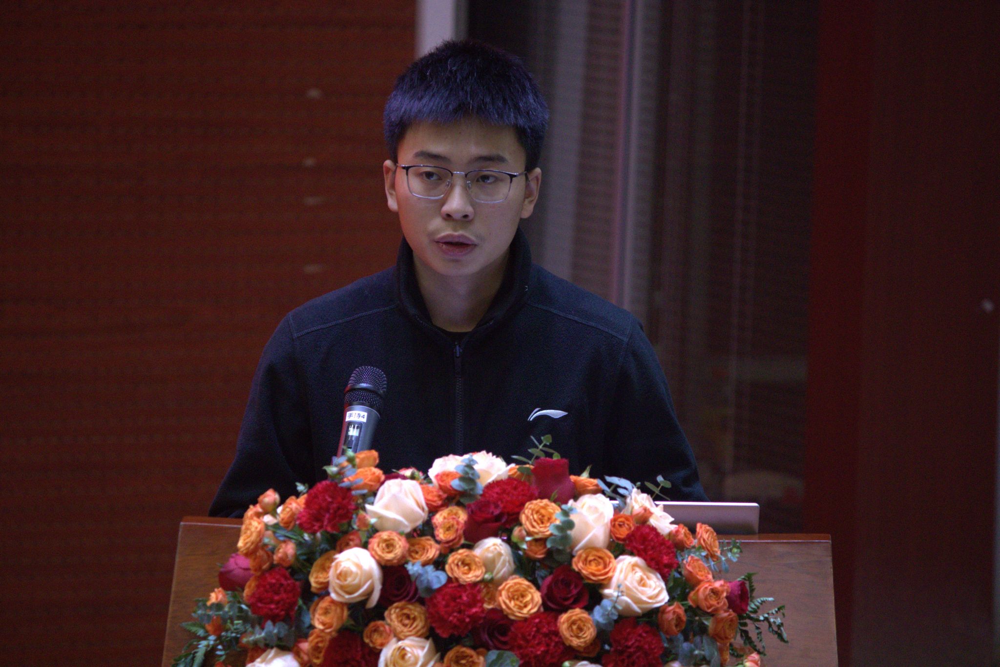 2024级本科生代表邓炅杰对学长学姐们的精彩分享表示了由衷的敬佩,并分享了自己作为大一新生参加本次表彰大会收到的激励与触动。他表示将以此次大会为契机,努力学习、全面成长,争取在未来也能站在表彰大会的舞台上,分享自己的成长故事。