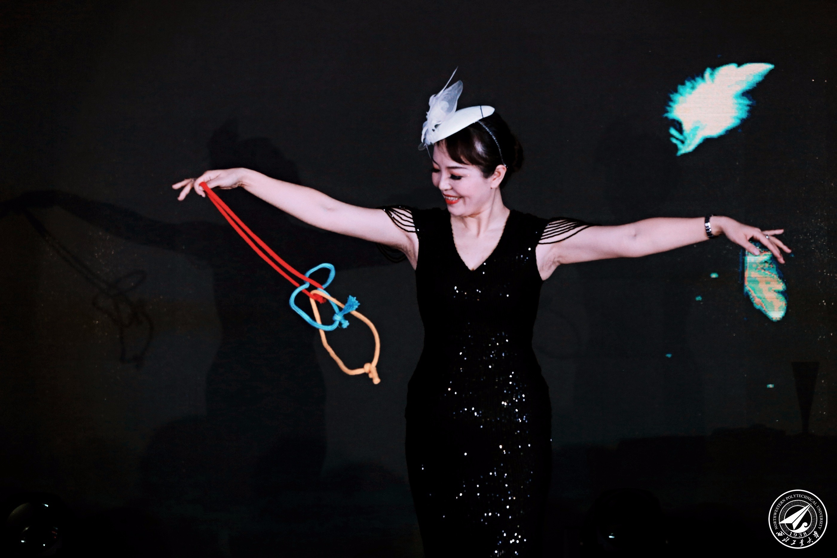 华服盛装,美乐妙曲,晚会完全由新生自编、自导、自演,历时两个月,以凌厉磅礴的气势隆重呈现。“时光如梭,聚焦今朝,我们又站在了崭新的起点之上。青春澎湃,活力飞扬,我们迎来了又一年的青年才俊。我们的梦想在这里起航,扬帆西工大人的激情与理想。我们的青春在这里绽放,书写着管院的绚丽华章。” 4位2019级新生主持人的开场白充满了激情,洪亮的声音回荡在现场。