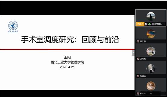 开展了《管理理论专题》系列学术报告第六讲,学院王阳副教授通过腾讯会议平台做了主题为“手术室调度研究:回顾与前沿”的专题报告,多位老师和各年级学生参与了本次线上学术讲座。