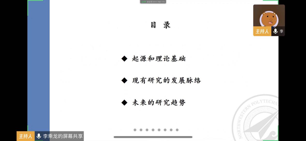 通过腾讯会议平台举办了《管理理论专题》系列报告第八讲。主讲人为李乘龙副教授,本次讲座主题为“统计质量控制研究:回顾与展望”。这属于博士生前沿课程的一部分,旨在让大家对统计质量控制技术有更系统的了解,校内多位老师和学生参加了此次线上学术讲座。