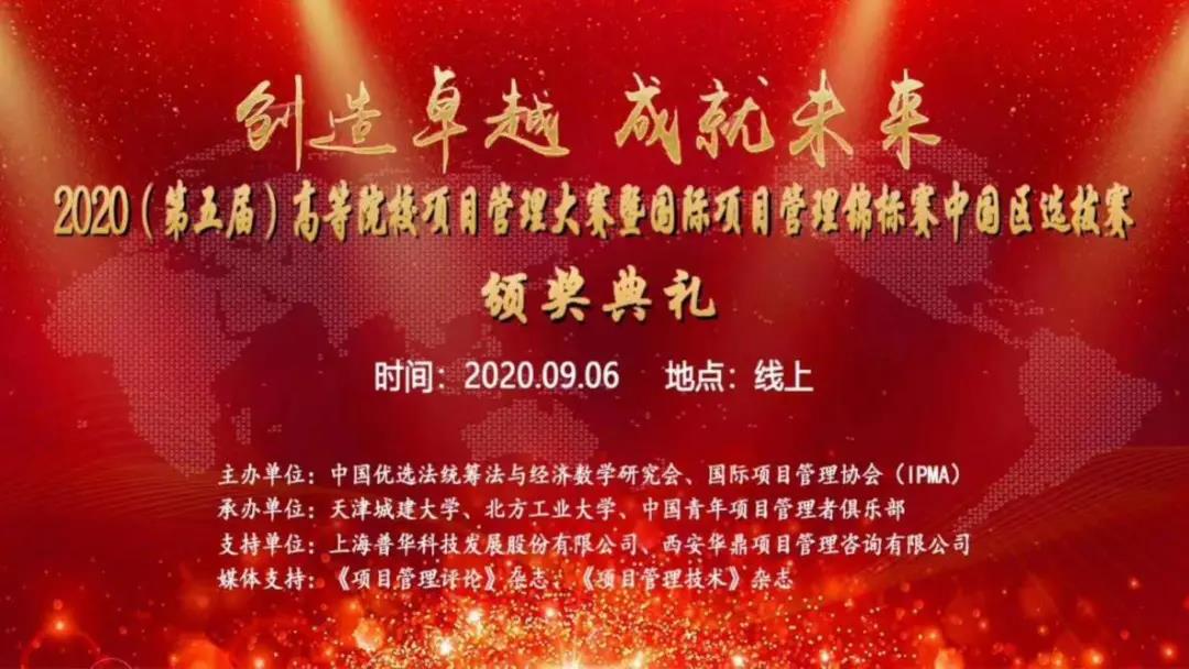 2020(第五届)高等院校项目管理大赛暨国际项目管理锦标赛中国赛区选拔赛,在防疫非常时期于2020年8月30日以线上方式成功举办,并于9月6日举行了云颁奖典礼。来自清华大学、北京大学、北京航空航天大学、漫岛动漫