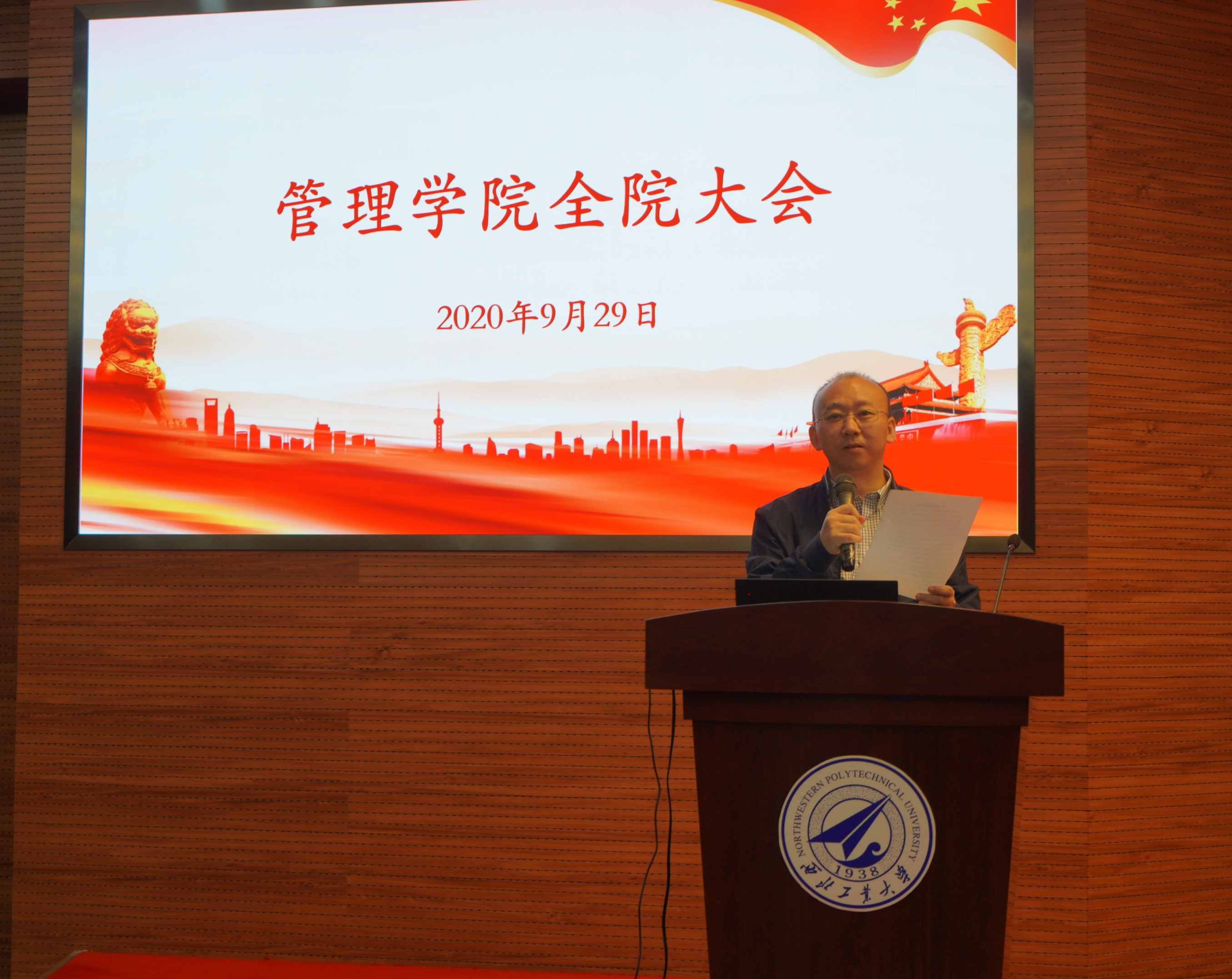 全体教职工参加会议,会议由院长车阿大主持。