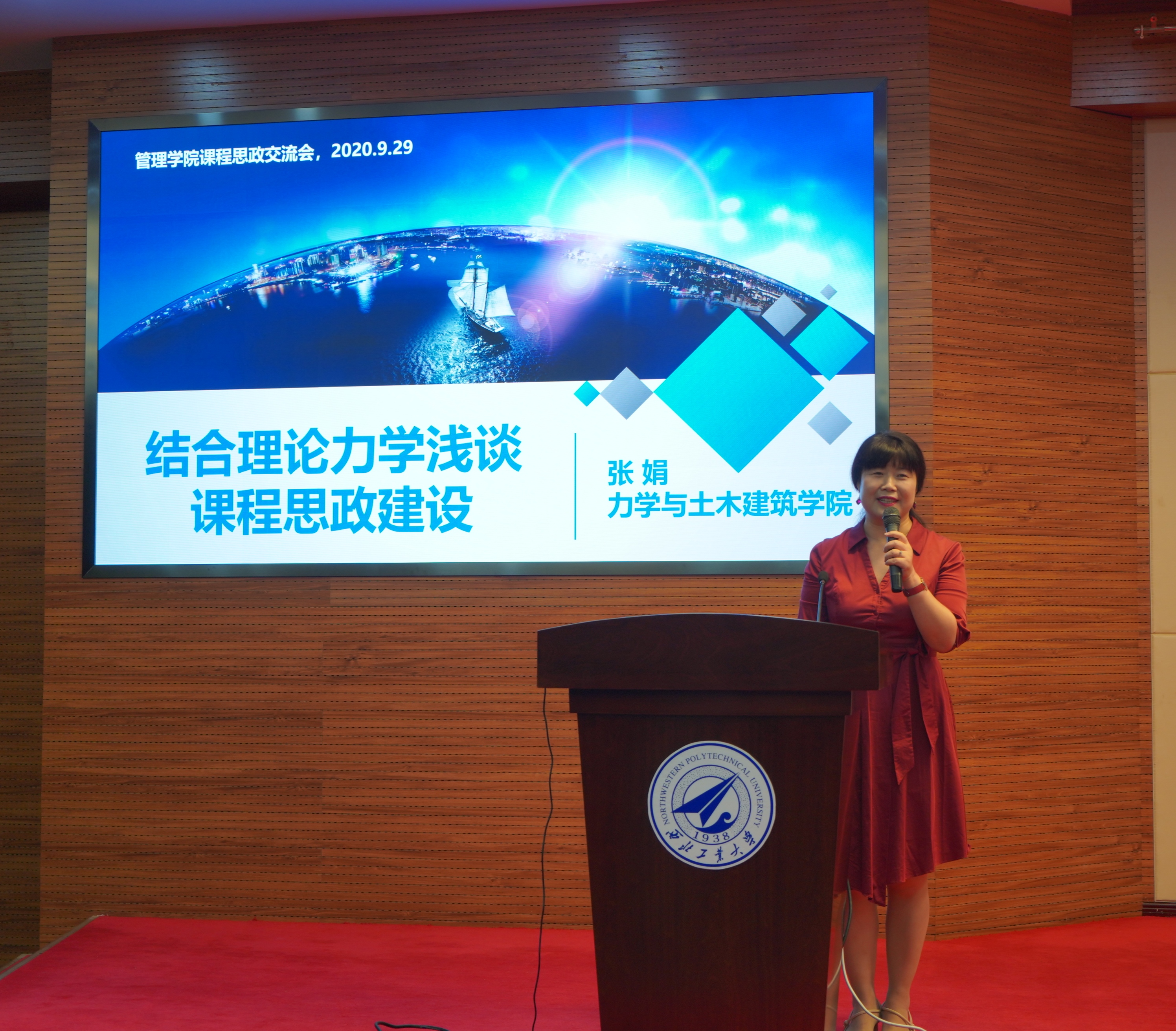 之后,力学与土木建筑学院张娟教授就“课程思政”的具体案例进行了分享,对如何将思政融入专业课程进行了讲解,鼓励老师开展“课程思政”教学改革的探索与创新,结合社会热点、国内外形势将思政教育贯穿教学全过程,引导学生情感共鸣,从而实现知识传授、能力培养与价值引领的有机统一。