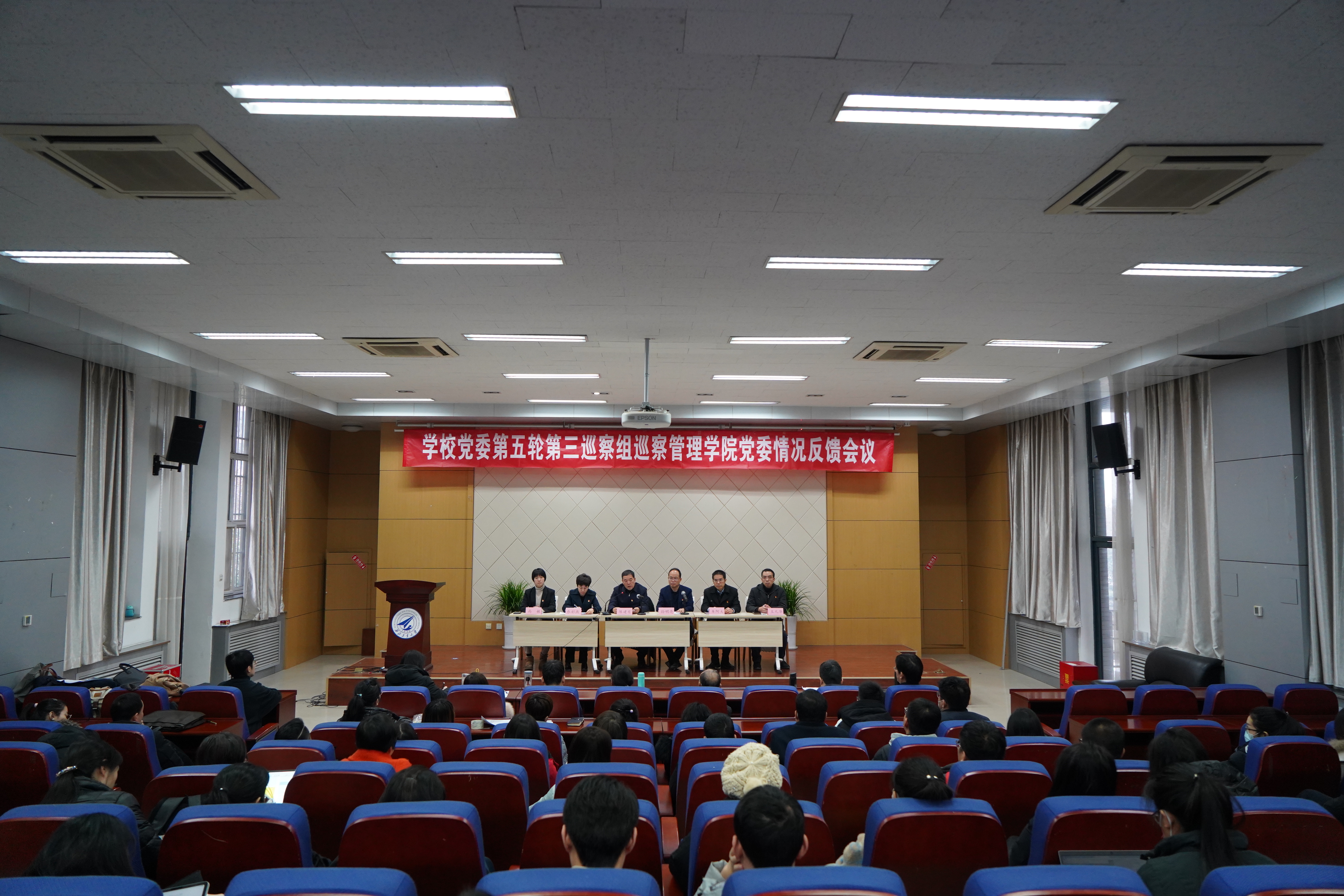 第三巡察组组长孙明亮通报巡察反馈意见。他指出,学院党委坚持学习贯彻习近平新时代中国特色社会主义思想,党的十九大精神、十九届二中、三中、四中全会和全国教育大会、全国研究生教育会议以及学校第十三次党代会精神,履行管党治党、办学治院主体责任,取得一定成效。但对照中央和学校党委要求,还存在以下问题和不足:政治理论学习不够系统深入,领导作用发挥不够充分,宣传文化意识形态工作存在薄弱环节;落实全面从严治党主体责任不够到位,作风建设不够严实,制度建设推进不够有力;党内政治生活不够严肃规范,党建工作基础薄弱;在“不忘初心、牢记使命”主题教育中,在“调动师生参与学院建设动员能力不强”方面整改成效不够明显。并根据上述问题提出了四点意见建议,要求学院党委要进一步提高政治站位,深入贯彻落实党的教育方针和中央重大决策部署;进一步强化主体责任,推动全面从严治党向纵深发展;进一步贯彻新时代党的组织路线,夯实党建工作基础;进一步健全长效机制,做好巡察“后半篇文章”。