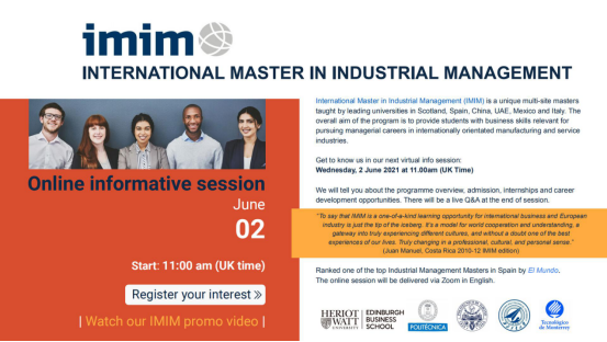 项目小组成员也耐心解答了同学们有关于项目申请及课程的疑惑,此次会议为IMIM工业管理国际硕士联合培养项目第一次信息交流会,第二次信息交流会计划于6月30日召开,欢迎对本项目感兴趣的各位同学关注学院通知。有关于IMIM工业管理国际硕士联合培养项目的具体要求请前往漫岛动漫