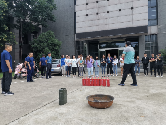 本次的活动主要分为安全培训会议和消防演练两部分。活动开始,学校消防科的许老师首先从危险源识别、火灾逃生、火灾报警、灭火器原理几个方面做了消防安全培训。许老师强调:学校配置的灭火器,只适用于初期火灾,一旦火灾无法控制首先想到的是如何逃生,逃生时要选择合适的逃生路线,不要乘坐电梯,用湿毛巾捂住口鼻,避免烫伤。在火灾报警时要汇报清楚火灾发生的地点,火势程度以及现场人数等关键信息,并等待救援人员到达现场。最后许老师就学校安全检查过程中经常发现的安全隐患以及应对方法做了详细的介绍。