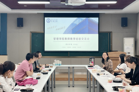 在交流会进行中,其他老师们也积极参与到交流讨论中,比如周琛淏结合自己申报建设的一门课程谈了自己未来对于更好利用多媒体服务课堂的设想;王阳介绍了自己科研反哺教学的相关做法;邵婧讲到学院目前正在推进AACSB国际商学院认证,依托其中的AOL课程体系建设,将有助于提升教学质量。最后乔彩燕也分享了自己2019年底去加拿大学习期间,被当时的室友一位来自其他高校的老师在异国他乡克服万难准备一流课程申报的故事,在座的老师们无不被其不畏艰难、拼搏争取的精神所感染,乔彩燕鼓励所有老师在日后的工作中也要有这种决心和拼劲。交流会在热烈的氛围中圆满结束。接下来学院还将继续从服务和支持教师发展的角度出发,组织不同主题的多种形式的青禾沙龙活动。