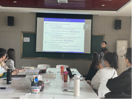 首先,赵龙峰副教授对赵志华老师进行了简要介绍。随后,赵志华老师以金融领域经典的均值-方差模型作为开场,阐述了在投资决策过程中投资者关心的收益和风险问题。随后,赵志华老师详细阐述了此次分享的优化模型,即考虑交易成本和双重约束(double cardinality constraints)来权衡投资规模和行业投资多元化之间的关系。此外,赵志华老师分享了在算法求解过程的一些经典方法和对未来研究展望。