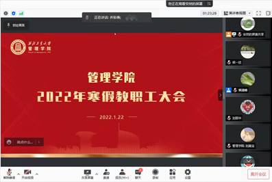 线上召开2021年度教代会暨全院教职工大会。会议分两部分进行,一是由工会主席蔡建峰主持2021年度教职工代表大会;二是由学院党委书记乔彩燕主持2022年寒假全院教职工大会,学院全体教职工参加了此次会议。