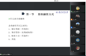 接着,孟艳玲副教授用财务管理的知识点,以恒大集团发展为引例,讲解了企业融资方式、企业资金来源、股权融资形式和新股发行程序等。孟老师授课过程当中引入时事热点,如目前教培机构的融资等问题,通过对财务知识的讲解,带领大家关注时事热点,关注国家经济,从而提高对于经济安全的意识。