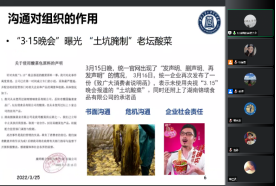 接着,张亚莉教授展示了“管理沟通”课程,讲解了中国古人的经典沟通故事,如邹忌讽齐王纳谏,魏征劝谏等,以及以中美建交为例,讲解了沟通对国家的重要意义。接着以最近发生的“土坑腌制”老残酸菜为例,讲解了沟通对组织的作用以及企业的社会责任问题,管理沟通应以建立起科学的沟通理念以及成长为具有正确价值观和良好职业素养的优秀管理者为课程目标,引人深思。