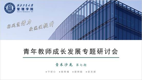研讨会首先由学院的优秀青年教师代表周琛淏做主题分享交流。他以强化产业驱动型的创新研究为主旨,结合个人求学及工作经历,围绕管理学科的青年教师应如何提升自身竞争力和增强服务国家需求的能力,生动地分享了自己的观察和思考。此外,周老师也介绍了学院目前和陕西中医药大学第二附属医院开展战略合作的情况,欢迎感兴趣的老师积极加入。