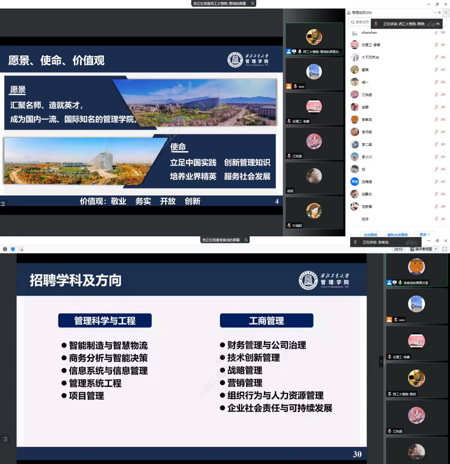 分享会环节结束后,进入到本次分论坛的第二个环节——学院人才招聘宣讲会。来自德国多特蒙德大学、加拿大曼尼托巴大学、浙江大学、中山大学等国内外十余名意向应聘学者一同参加了此次宣讲会。宣讲会由贾明全面介绍了学院的整体情况包括院史院情、师资队伍、科学研究、人才培养和国际合作等方面,李乘龙则负责详细介绍了学院目前的人才引进政策、人才成长路径及薪酬待遇等方面内容,明确表达了漫岛动漫