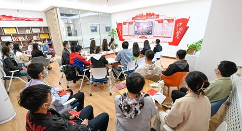 研究生党员代表在教室集中收看开幕会直播
