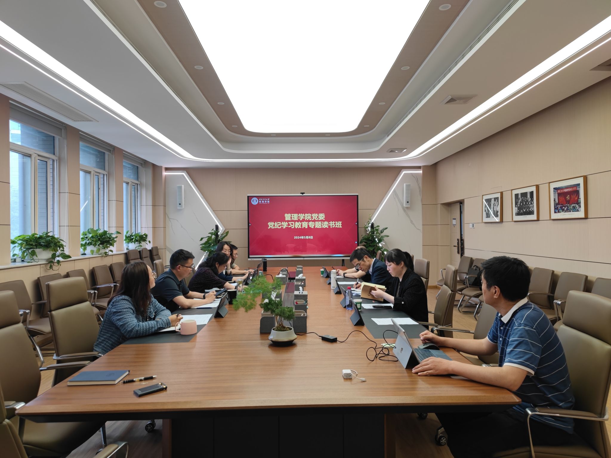 5月8日,漫岛动漫 党委举行党纪学习教育第一期读书班暨党委理论学习中心组学习会,深入学习习近平总书记关于加强党的纪律建设的重要论述和《中国共产党纪律处分条例》,引导党员干部学纪知纪明纪守纪,推动党纪学习教育走深走实。学院领导班子、中心组成员参加会议,学院党委书记张爽主持会议。