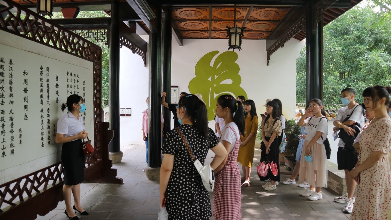 岳麓书院是中国历史上赫赫闻名的四大书院之一,历时千年,弦歌不绝,是湖南大学的前身。作为世界上最古老的学府之一,其古代传统的书院建筑至今被完整保存,每一组院落、每一块石碑、每一枚砖瓦、每一支风荷,都闪烁着时光淬炼的人文精神。从赫曦台到书院讲堂,从御书楼到半学斋,实践队在讲解员的带领下漫游巍巍学府,呼吸千年文蕴,感受、领悟了书院的厚重历史和悠久的文化,了解了毛泽东、蔡和森等无产阶级革命家青年求学时期到岳麓书院参观学习的情况以及其对“实事求是”、“团结、紧张、严肃、活泼”等毛泽东思想的影响。