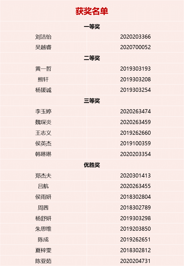 经过激烈的角逐,最终的获奖名单如下: