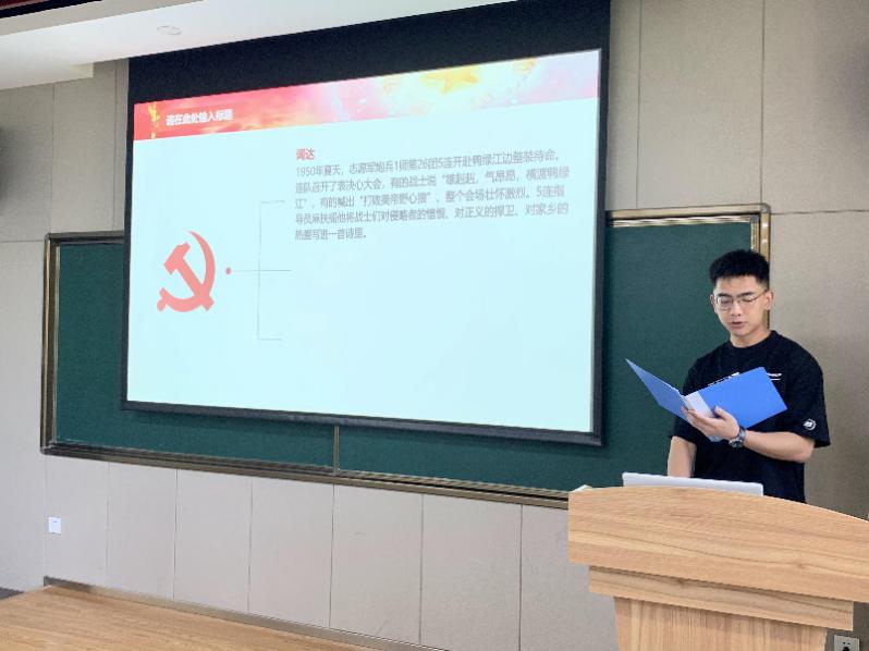 “雄赳赳,气昂昂,跨过鸭绿江!保和平,卫祖国,就是保家乡……”,杨援诚同学为大家分享了耳熟能详的《志愿军战歌》背后不为人知的创作故事,现场各位被志愿军英勇杀敌的大无畏精神所洗礼。