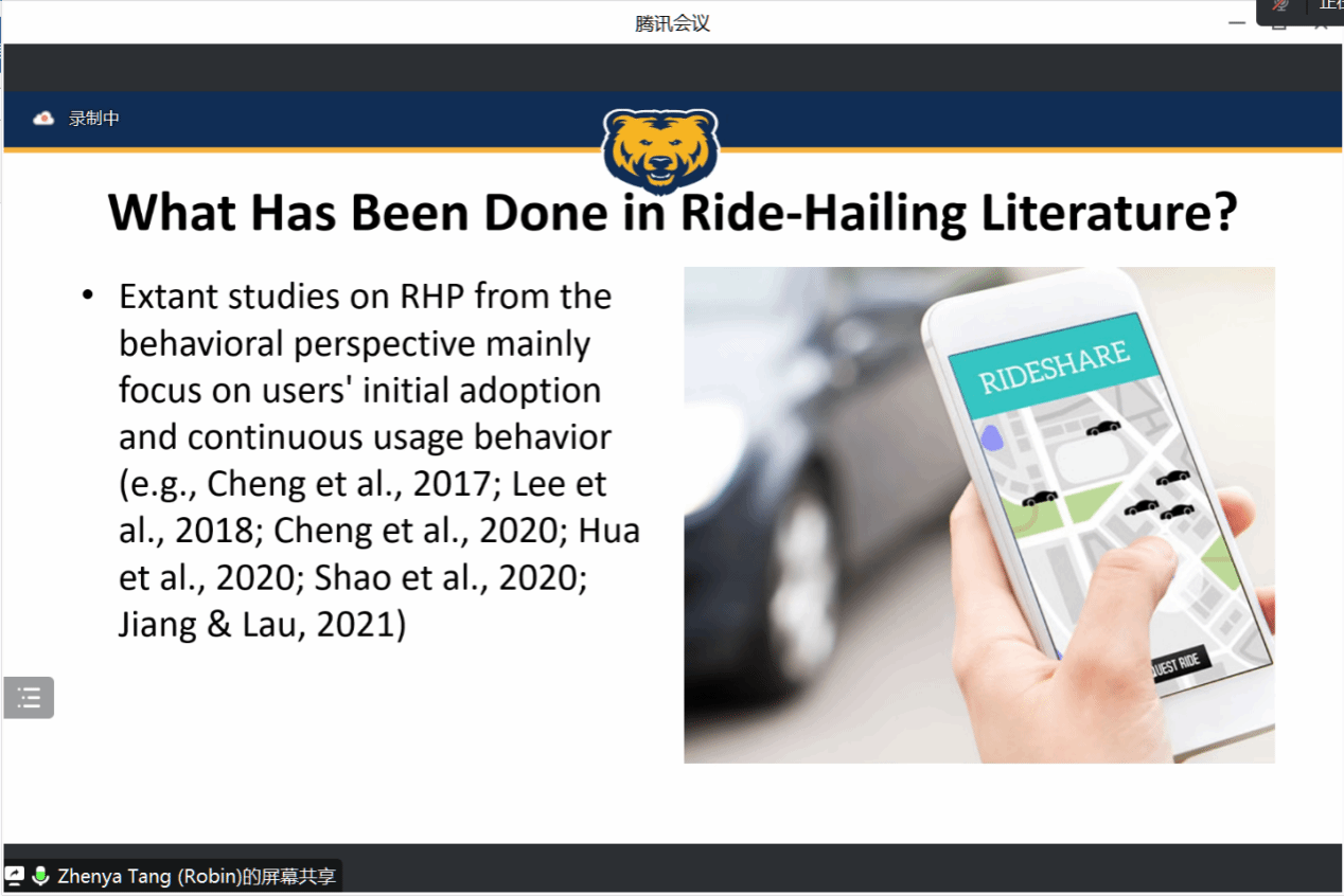 此次报告会,汤振亚以Uber平台为例,聚焦于人工智能算法的不公平性对网约车司机退车离开平台的影响。本研究以生活中有趣的现象为导向,综合现有的文献和权威报刊的相关报道,分析文献中的不足,提炼本研究的核心问题——网约车平台算法不公平性如何导致司机停止使用平台?基于组织公平理论(Organizational Justice Theory)和SSO模型(Stressor-Strain-Outcome)构建了本研究的理论模型。在理论层面,本研究首次为零工经济下网约车司机停止使用平台这一现象提供理论解释和分析;同时,本研究关注人工智能(算法)的应用可能存在的一些负面影响;此外,本研究也为相关研究内容提供了定量的验证。在实践上,本研究也为网约车平台改善平台质量、提升司机使用意愿等提出了具体可行的建议。本次报告中,汤振亚在如何选题、通过有趣的现象提炼研究问题、提炼理论贡献等方面为参会师生提供了建议。讲座后,他同线上师生进行了交流,针对师生提出的问题给出了针对性的解答,并鼓励同学们以兴趣驱动科学研究。
