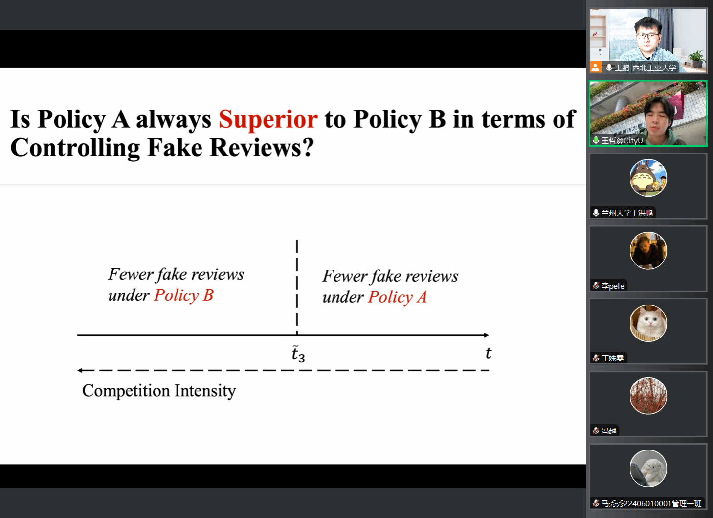师生作题为《评论展示政策如何影响平台打击虚假评论的动机:一个博弈论的视角》的学术讲座,本次讲座为漫岛动漫