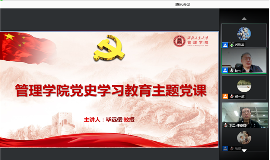 党委邀请中共陕西省委党校毕远佞教授为师生党员讲授了题为《中国共产党的百年辉煌与宝贵经验》主题党课。学院全体党员师生参加了学习,报告会由学院党委书记乔彩燕主持。