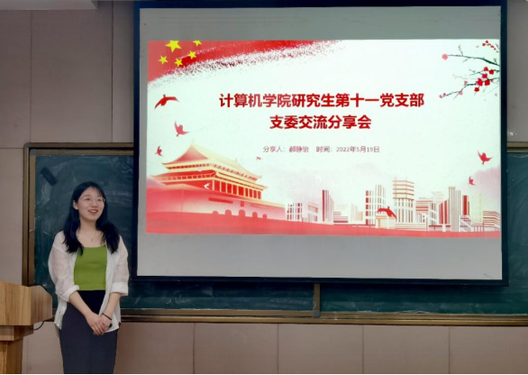 接着,学院邀请计算机学院研究生第十一党支部书记郝静怡就支部建设进行经验交流。郝静怡同学讲述了其支部“以奖促学、以学促建”的品牌支部建设过程,并在讲述后与参加培训的支委们积极互动,就支委提出的“怎样提升支部凝聚力,增加支部活动参与率”、“怎样协调低年级支委与高年级支部成员关系”等问题,郝静怡同学都结合实例经验一一为大家解答。