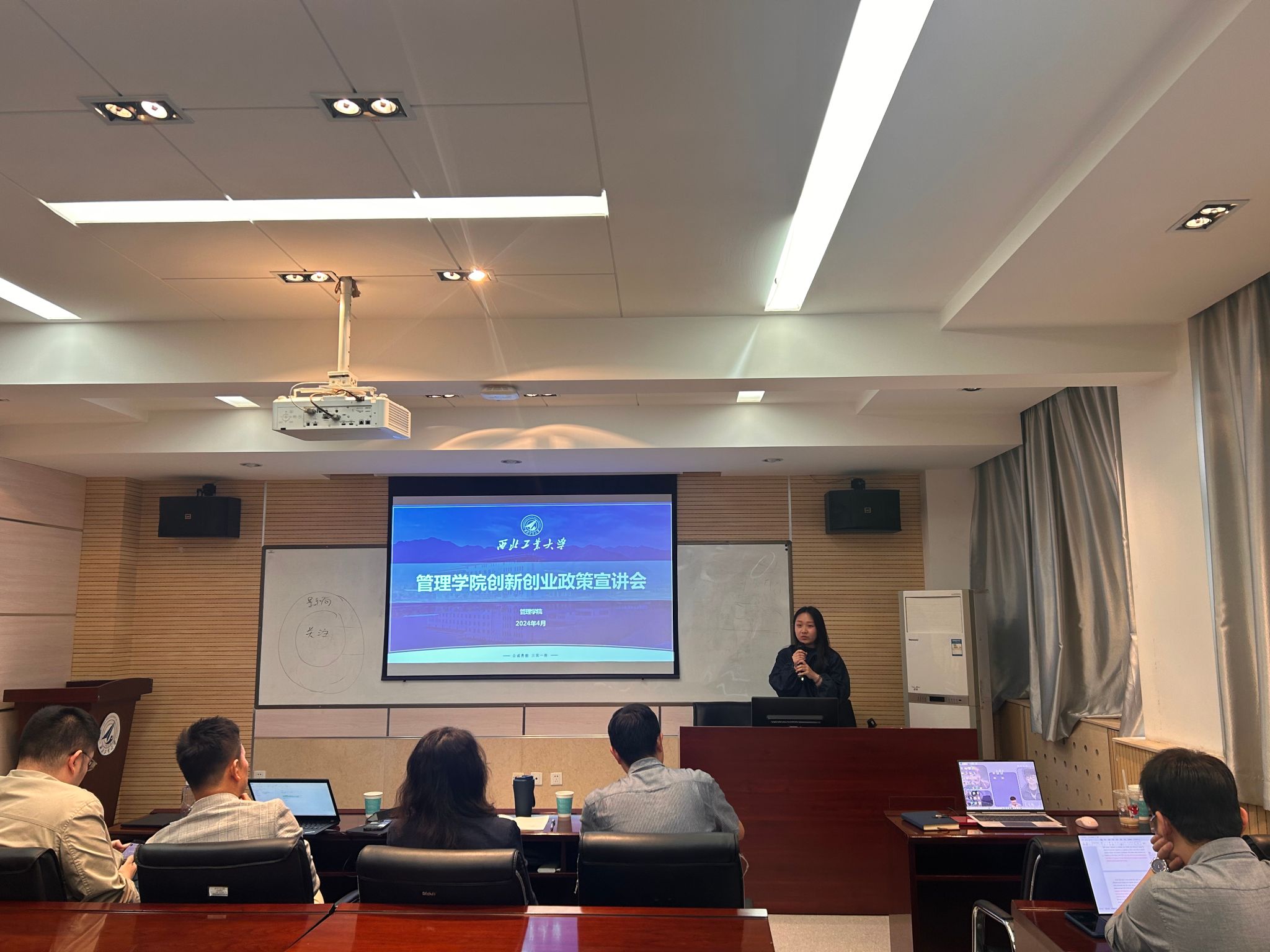 在教师创新创业宣讲会上,巩雪从教师如何指导竞赛、资源成果转换、学校学院支持与奖励三个方面向学院教师详细介绍了备赛的过程,重点向教师们讲解了学院的“本科生创新创业攀登计划”。
