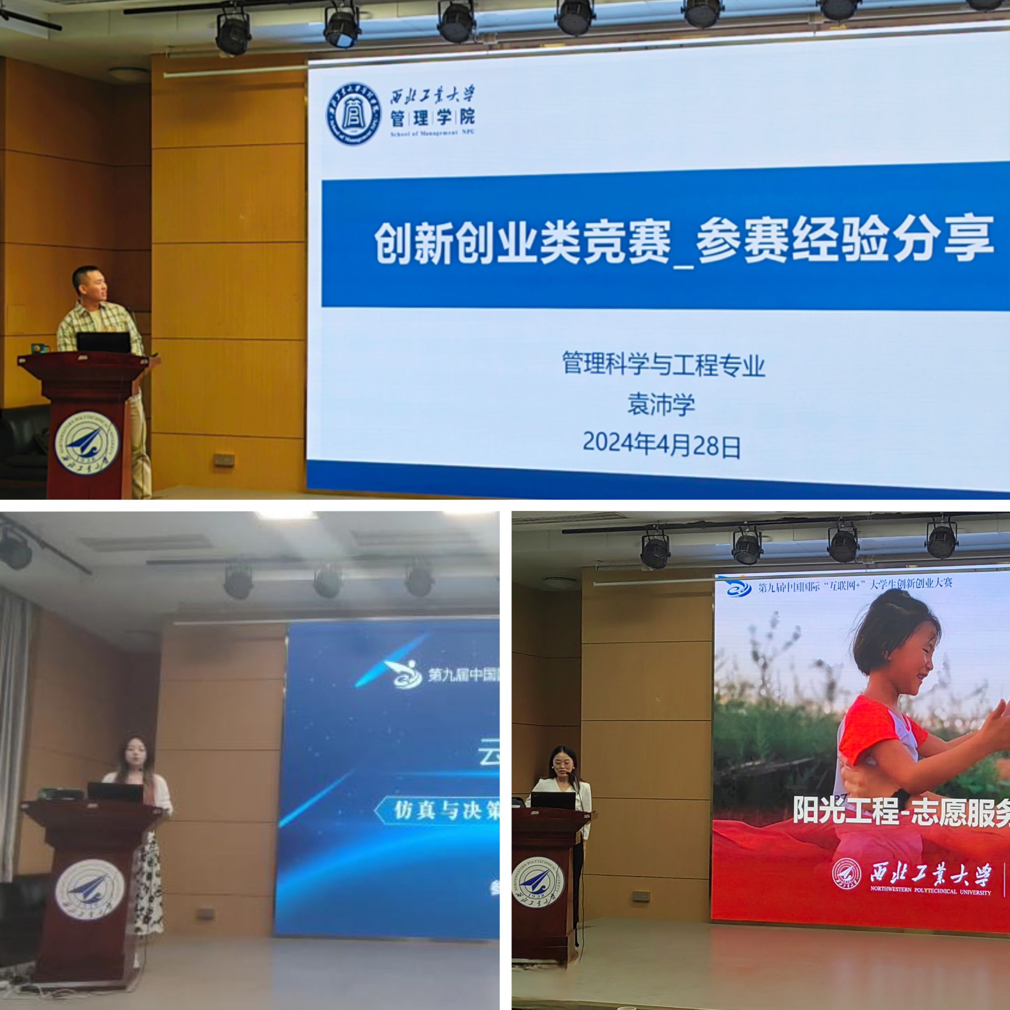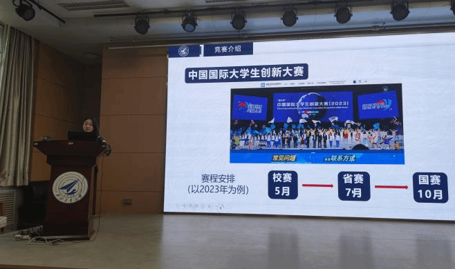 在学生创新创业宣讲会上,学工秘书巩雪从竞赛简介、准备过程、支持与奖励三个方面,对各大赛事具体要求、学生如何参与创新创业竞赛、学校学院支持奖励政策进行了详细介绍。学院还邀请了第九届中国国际“互联网+”大学生创新创业大赛省级金奖项目负责人袁沛学分享了备赛经验、毕海月分享了优秀案例《云仓智储——仿真与决策一体化数字孪生平台》、谢雨琛分享了优秀案例《阳光工程——志愿服务 二十五载 弦歌不辍》,让同学们对创新创业竞赛有了更直观地了解。