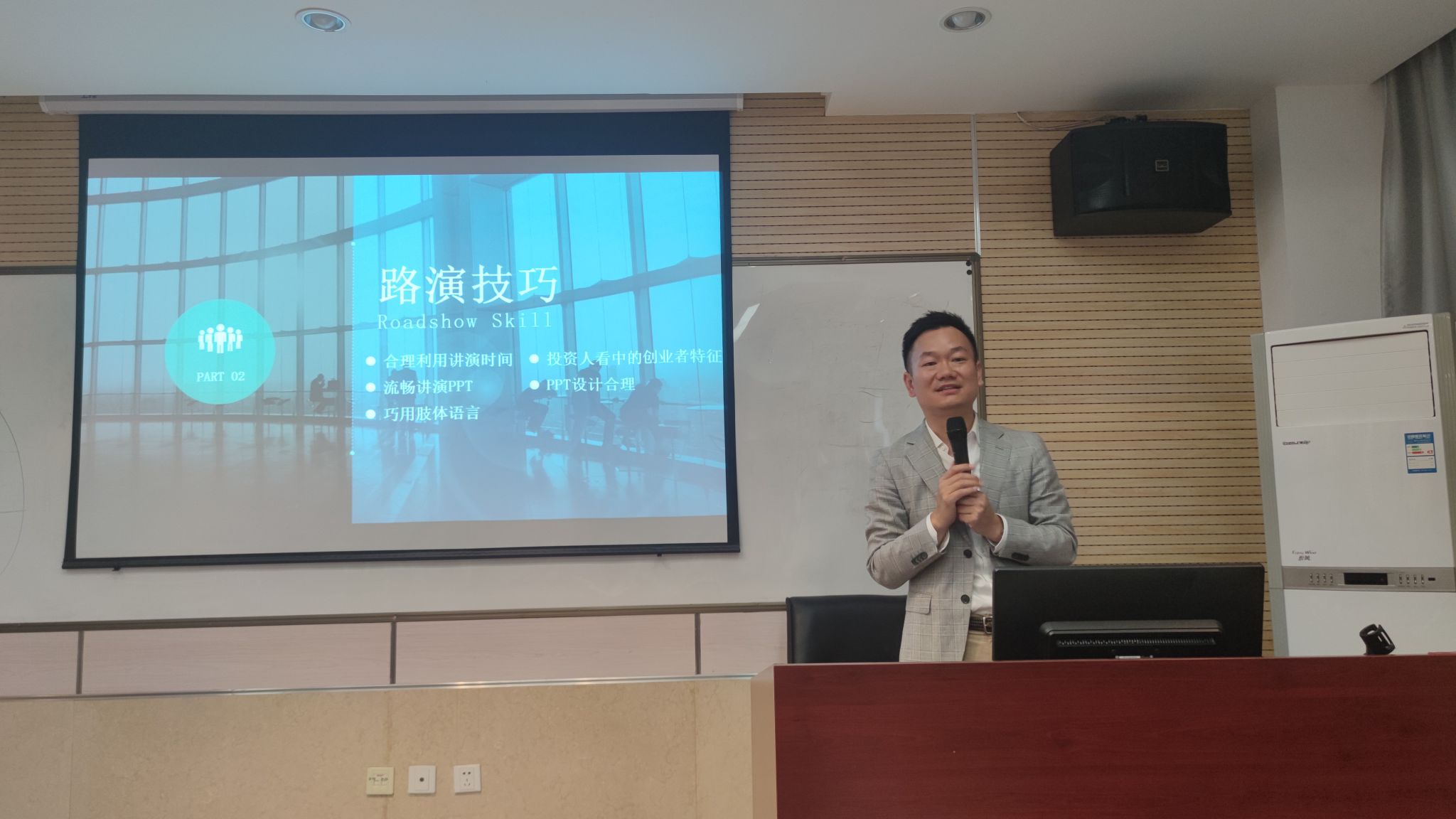 学院还邀请了浙江海邦基金合伙人、中瀚智库总经理、互联网+大学生创新创业大赛评委王鹏,从竞赛规则、路演时间、PPT设计、答辩细节、评审要点等方面对路演技巧进行了详细介绍,现场展示了互联网+大学生创新创业大赛国家级金奖项目,让老师们对创新创业竞赛有了更深入的了解。