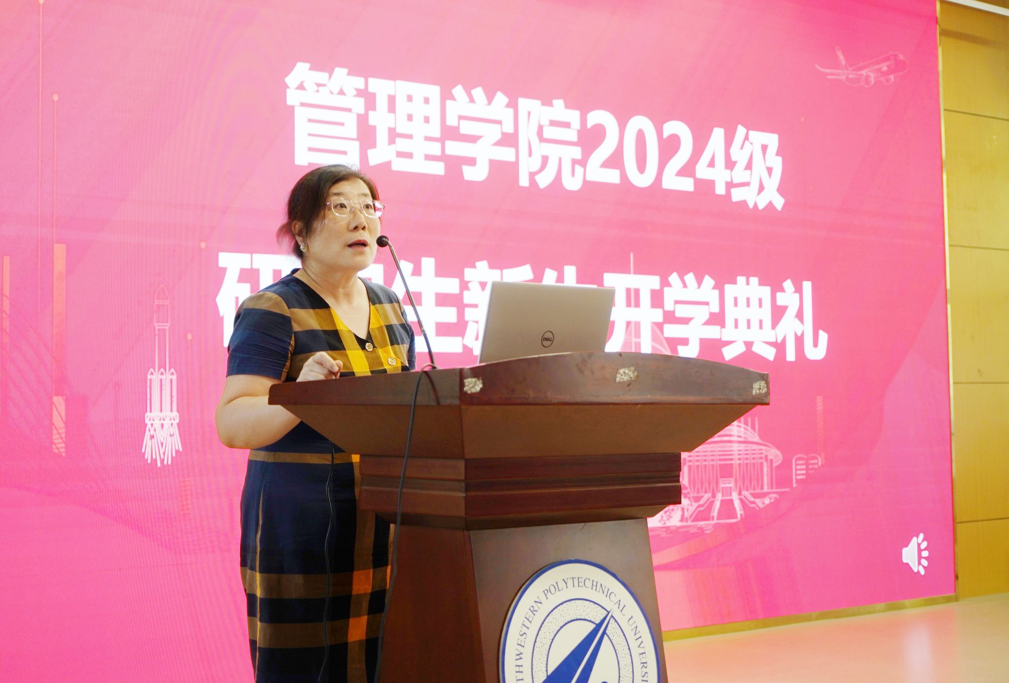 常玉教授作为导师代表发言,以“读研是一场人生修炼”为主题,和同学们进行了交流。她建议同学们要把读研当成一个新起点,珍惜学习机会和平台,树立远大目标并为之努力奋斗,为未来人生之路打下良好基础。她勉励同学们要善于观察与思考,既要胸怀天下,也要脚踏实地,努力奔涌、超越前浪,创造属于自己的辉煌。