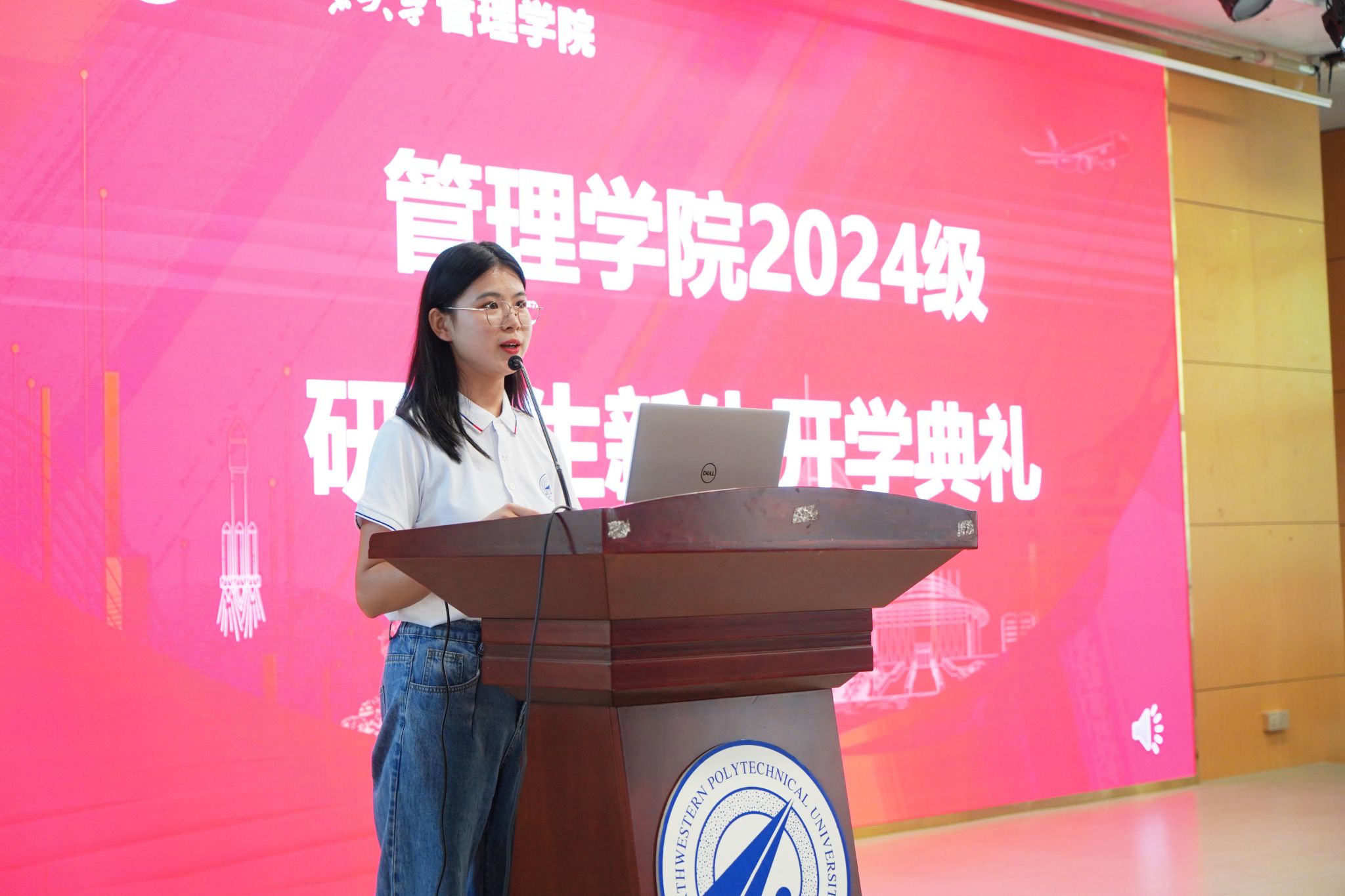 最后,工商管理专业李芙英代表新生发言。她回顾了自己在本科阶段的成长历程与收获,表达了对进入漫岛动漫 继续深造的喜悦与激动。她从“坚定目标”“坚持理想”“坚守底线”三个方面分享了自己对研究生学习生涯的期待,并祝愿所有同学都能挖掘潜能,努力拼搏,实现梦想。