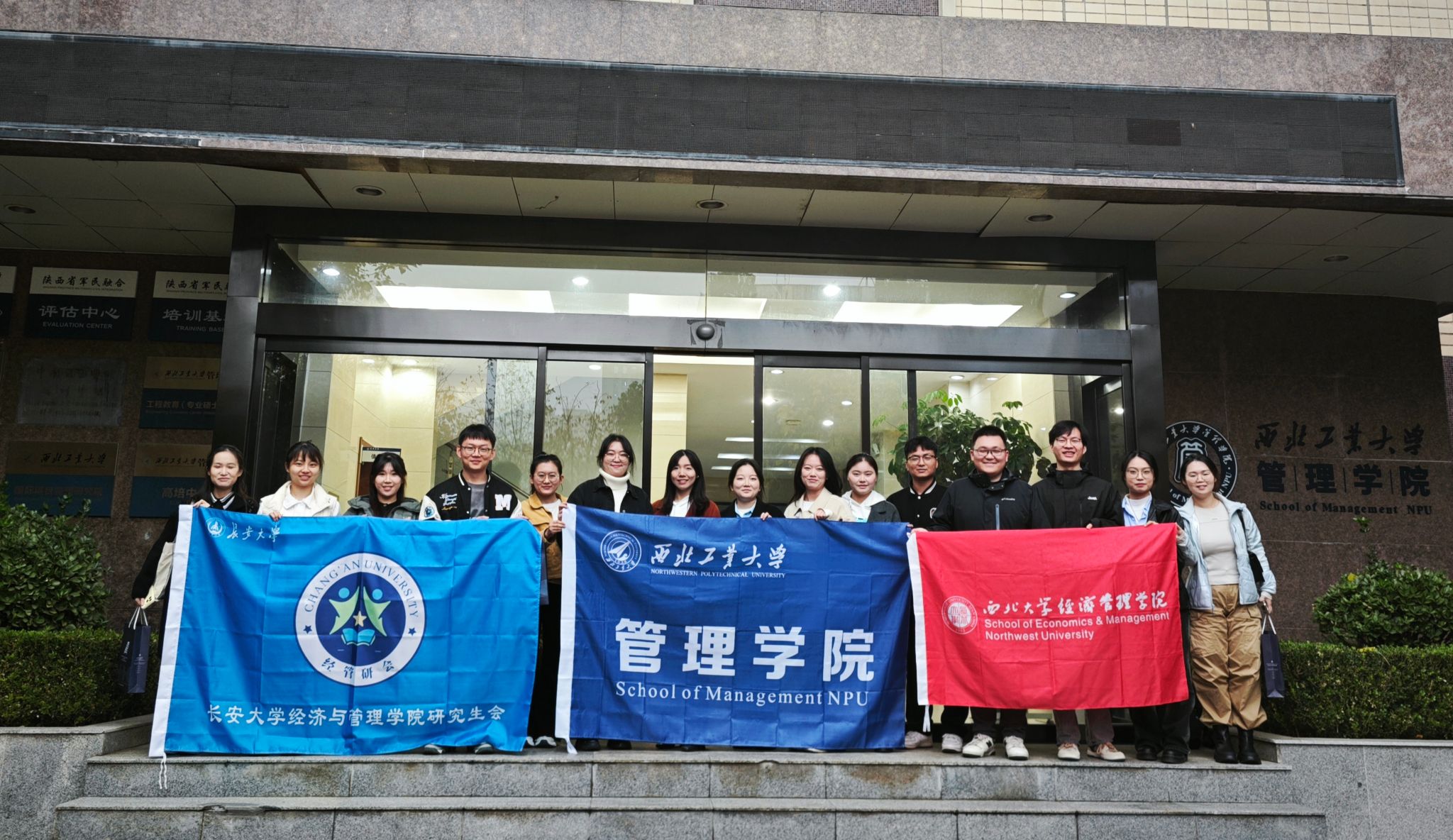 党委副书记王海啸、研究生会指导老师龚汨嘉、研究生会成员、长安大学经济与漫岛动漫