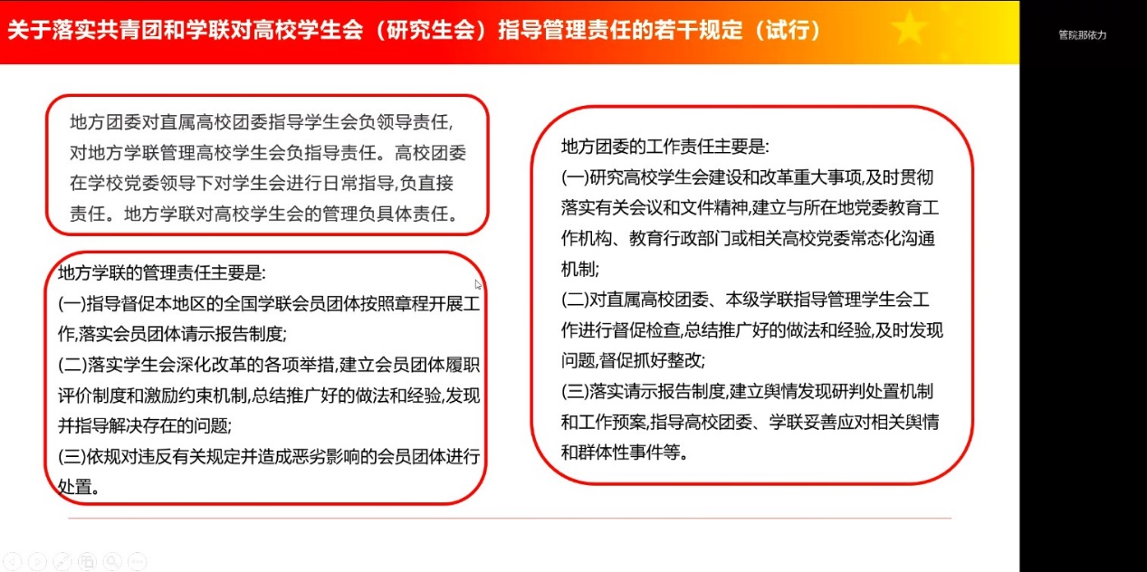 学生会以线上会议形式举办学习和贯彻关于落实共青团和学联对高校学生会(研究生会)指导管理责任的若干规定(试行)会议,本次会议由漫岛动漫