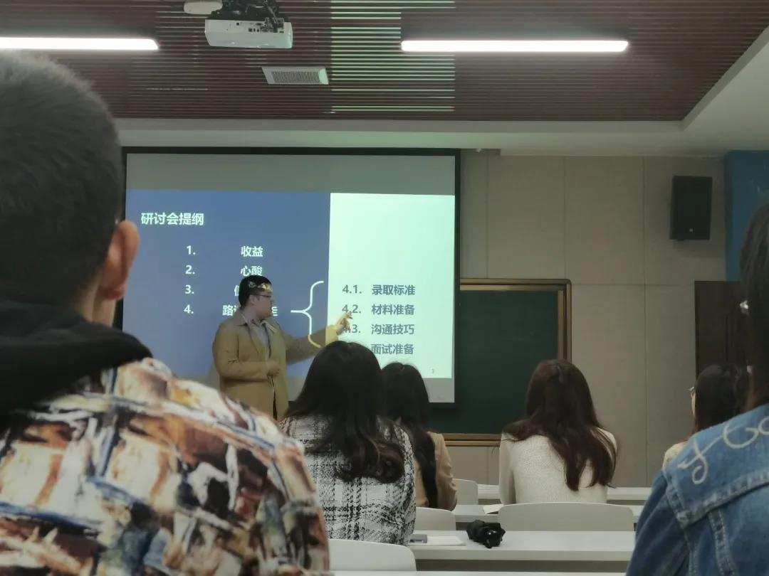 周教授也给我们分享了一些沟通技巧,比如第一印象很重要,导师推荐最重要,建立起联系之后要积极主动地沟通。在面试准备方面,他提醒我们自我介绍时要抓住关键,阐明自己的核心能力,并且提前在专业知识、心理建设上做好准备。面试是沟通的好时机,要懂得提问。