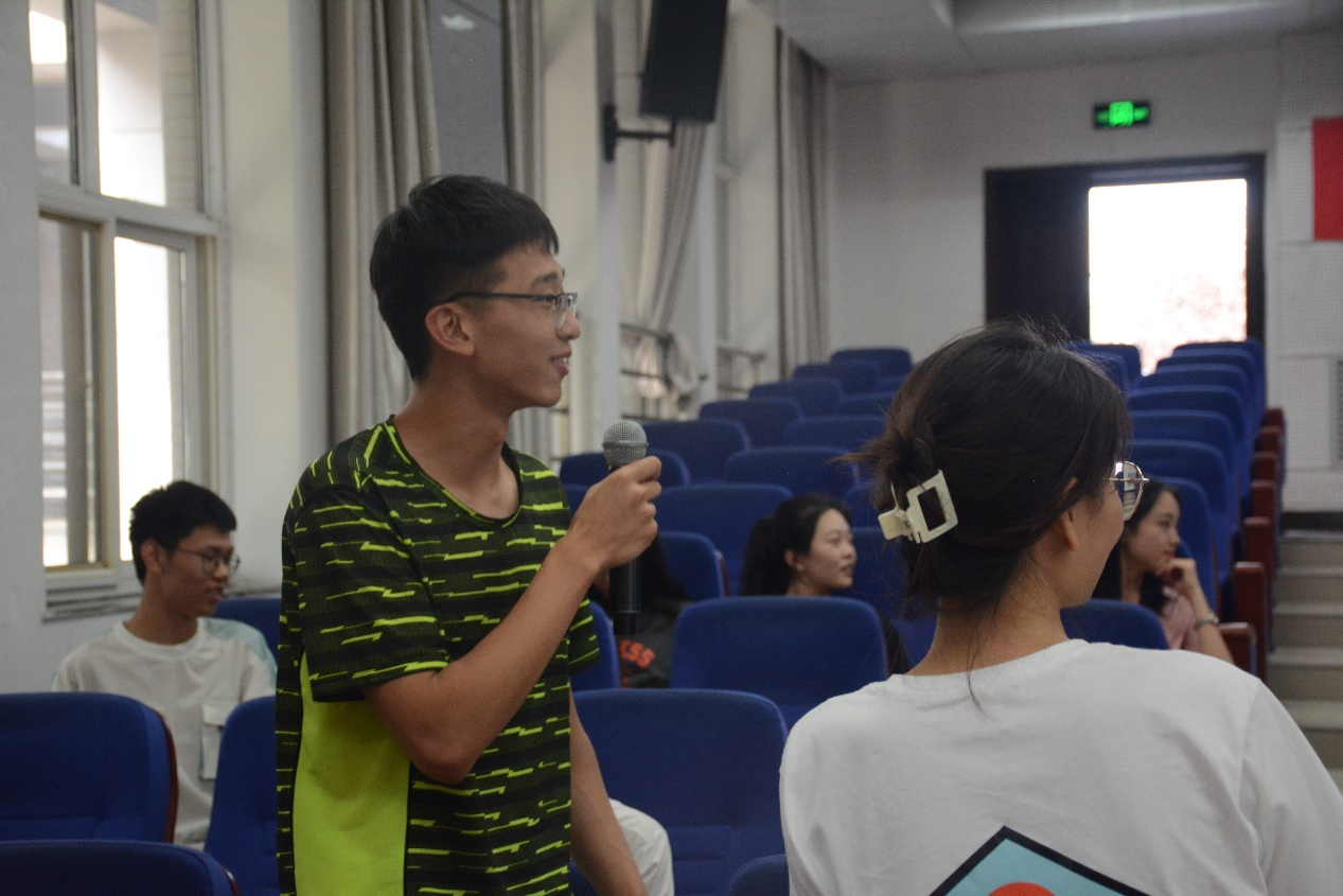 在胡克船长游戏中,大家纷纷给自己起了有趣的代号,不同班级的同学们通过这个游戏很快熟络起来,报告厅里欢笑不断。